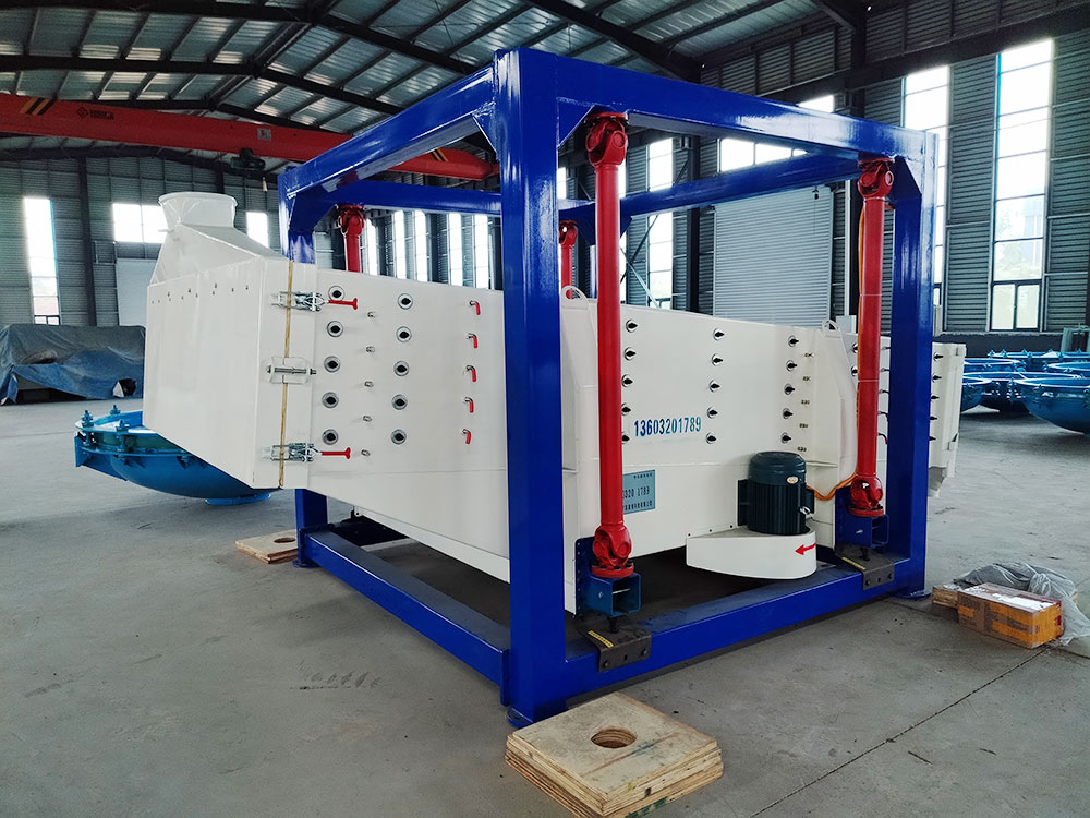 產(chǎn)品描述: 方形搖擺篩系列篩機(jī)是滿足大產(chǎn)量、高精度需求的用戶而研發(fā)設(shè)計(jì)的一種篩分設(shè)備。它廣泛用于化工、冶金、礦業(yè)、飼料業(yè)、食品等多個(gè)行業(yè)。尤其適用于重堿、食鹽、樹脂、復(fù)合肥、大小顆粒尿素、飼料、還原鐵粉、氧化鋯、陶粒、重晶石等 工作原理 1.方形搖擺篩是采用了進(jìn)口普通電機(jī)做傳動(dòng)源,并且引進(jìn)德國(guó)技術(shù),傳動(dòng)方式為仿人工式。 2.運(yùn)動(dòng)軌跡為向前向左右畫橢圓形軌跡,從而使物料貼近網(wǎng)面,在篩網(wǎng)上面也采用橢圓曲線運(yùn)動(dòng),使物料在曬面上停留時(shí)間長(zhǎng)久,從而達(dá)到有效篩分?! ‘a(chǎn)品特點(diǎn) 全封閉的結(jié)構(gòu),粉塵不飛揚(yáng),采用偏重平衡,使篩機(jī)振動(dòng)小、噪音低。符合環(huán)境環(huán)保要求。 組合圓周、橢圓、直線三種運(yùn)動(dòng)方式,篩分效果好。適合多種物料篩分。 配備自動(dòng)張緊和自動(dòng)清潔的篩網(wǎng)安裝系統(tǒng),使篩網(wǎng)利用率高、壽命長(zhǎng),換網(wǎng)結(jié)構(gòu)簡(jiǎn)便快捷?! 〖訌?qiáng)型機(jī)座,保證設(shè)備運(yùn)轉(zhuǎn)更平衡,亦可根據(jù)實(shí)際場(chǎng)地情況采用吊掛式結(jié)構(gòu)滿足客戶改造需要。 改進(jìn)鋼絲繩吊掛結(jié)構(gòu),避免鋼絲磨損?! 蓪雍Y框設(shè)計(jì);也有三層篩框的機(jī)型供客戶選擇?! ∮糜诜蹱罨蝾w粒飼料的篩選和分級(jí),也可用于飼料廠原料的初清,以及大、中型飼料廠二次粉碎后中間產(chǎn)品的分級(jí) 維修保養(yǎng) 1.搖擺篩在進(jìn)行開機(jī)之前,需要檢查篩面上物料的振動(dòng)狀態(tài),并保證物料通道的暢通運(yùn)行?! ?.為了確保搖擺篩工作狀態(tài)良好,應(yīng)定期檢查篩選效率和設(shè)備運(yùn)行狀態(tài)。經(jīng)常檢查喂料機(jī)構(gòu)和清理篩面,使篩孔通暢率保持在80%以上;檢查清理橡皮球是否磨損,必要時(shí)進(jìn)行更換,以保持篩面具有足夠的自清能力?! ?.正確調(diào)節(jié)搖擺篩的喂料裝置,使物料層按篩面寬度均勻穩(wěn)定地進(jìn)入工作篩面;避免物料集中于篩面局部位置,影響篩理效果?! ?.如果搖擺篩帶有除塵裝置,開機(jī)順序?yàn)橄乳_相關(guān)風(fēng)機(jī),然后啟動(dòng)振動(dòng)機(jī)構(gòu),待設(shè)備運(yùn)行平穩(wěn)后再開始進(jìn)料正常工作?! ?.搖擺篩在使用中,它的主要磨損部件就是篩網(wǎng),因此篩網(wǎng)的檢查是非常重要的,并在日常的檢修中,對(duì)篩網(wǎng)進(jìn)行及時(shí)的更換維維修